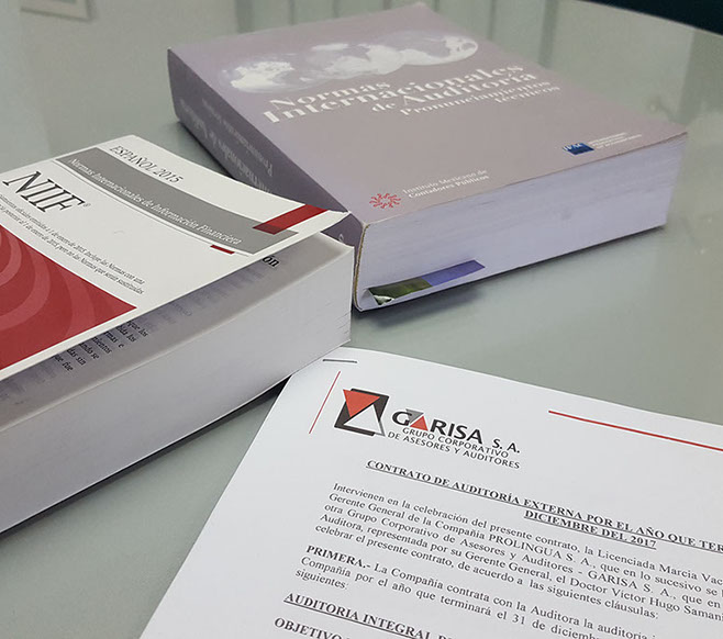 GARISA S.A. ofrece a sus clientes un servicio profesional, basado en normas éticas y estándares de calidad elevados en los campos en los que nos desenvolvemos. Estamos capacitados para asesorar íntegramente en los ámbitos señalados basando nuestro criterio en Nomas Internacionales de Información Financiera (NIIF) y Normas Internacionales de Auditoria y Aseguramientos (NIAA)